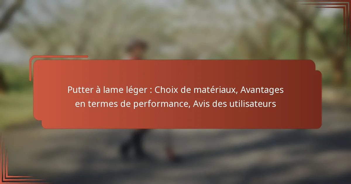 Putter à lame léger : Choix de matériaux, Avantages en termes de performance, Avis des utilisateurs